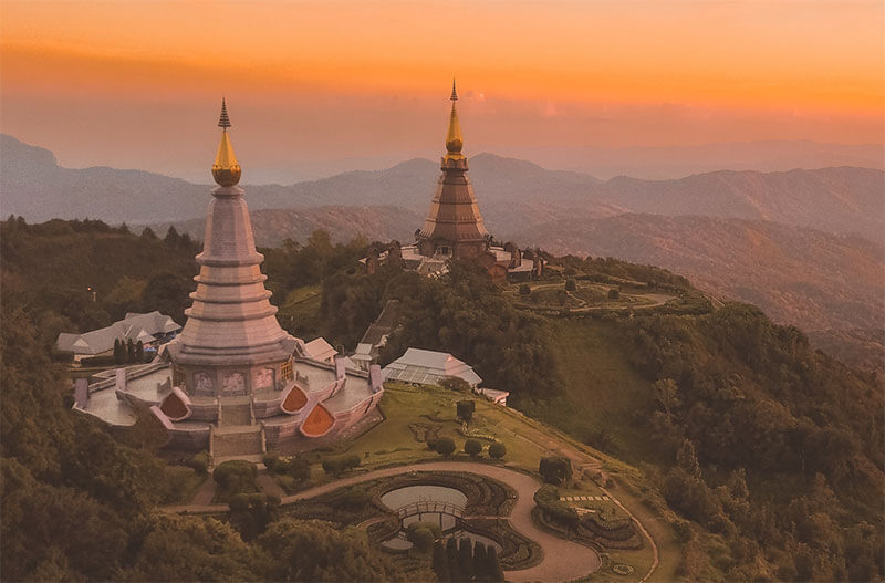 На территории парка находятся ступы Короля и Королевы. Расположен на самой высокой горе Таиланда.